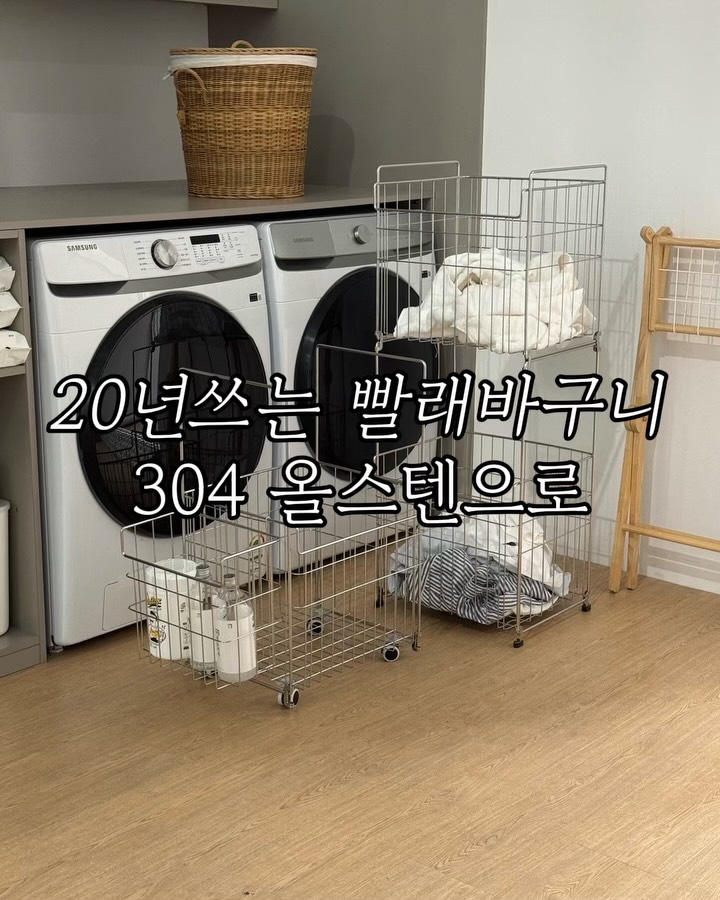 내맘대로합쳤다분리했다👍올인원 세탁바구니 ver2 아직도 젖은 수건에서 나는 냄새와 플라스틱 바구니의 찌그러짐 때문에 고민하고 계신가요?😎 올인원 세탁바구니 ver.2는 일단 통풍이 원활하니까 빨랫감이 방치되어도 정말 산뜻하게 유지되더라고요 A타입과 B타입 손잡이 조합으로 내 키와 동선에 딱 맞게 조절할 수 있는 점이 정말 세심합니다 미니 바스켓에는 세제나 속옷류를 따로 담아 효율적으로 분류할 수 있고 무엇보다 스텐 특유의 차가우면서도 깨끗한 디자인이 세탁실을 호텔처럼 정갈하게 만들어줘요 무겁게 들지 말고 바퀴로 쓱 밀어서 세탁 끝내세요 홈앤홈 특가공구 농치지 마세요😎 🕒공구기간 4월15일-재고 소진시 마감