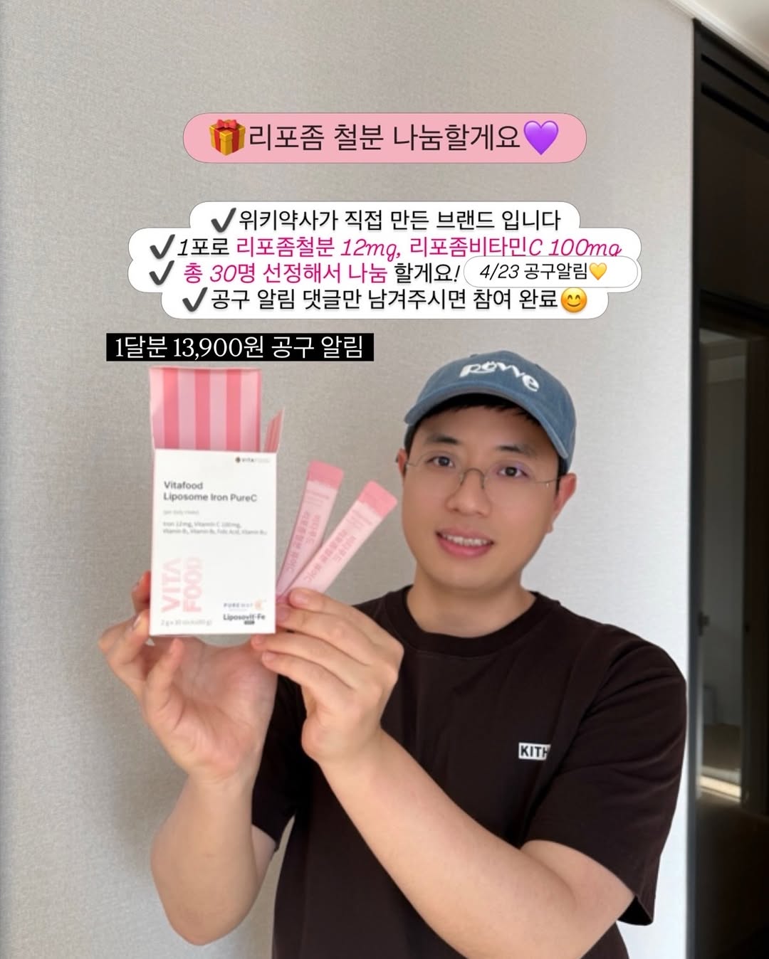 🎁리포좀 철분 나눔 이벤트! (30명 선정) 4/23 오픈하는 리포좀 철 공구 알림 댓글만 남겨주시면 참여 완료! 총 30명 선정해서 비타푸드 리포좀철분 보내드려요 📍공구 일정📍 4/23 오전 10시 오픈 📍공구 제품 안내📍 🔺비타푸드 리포좀철분 퓨어C🔺 - 레몬맛 맛있는 파우더 제형 - 1포에 리포좀철분 12mg(비헴철), 리포좀비타민C 100mg, 활성엽산 120mcg(콰트레폴릭) - 사르르 녹는 제형이라 아이부터 성인까지 모두 맛있게 섭취 가능해요 - Liposovit-Fe 리포좀 원료로 철분 특유의 비린맛을 최소화 하고 체내 전달력과 흡수율을 높였습니다. - 제가 정말 열심히 준비했습니다. 열심히 준비한 내용들 상세페이지에 자세히 적어두었으니 공구 오픈후 꼭 살펴봐주세요^^ ✔️프로필 링크에 미리 공구링크 올려둘게요😊 가격 구성도 상세페이지에서 확인해보셔요❗️ ✔️최대 할인가 기준 1달분 13,900원으로 진행할 예정입니다 ✔️소비기한 : 2028년 3월 29일 까지