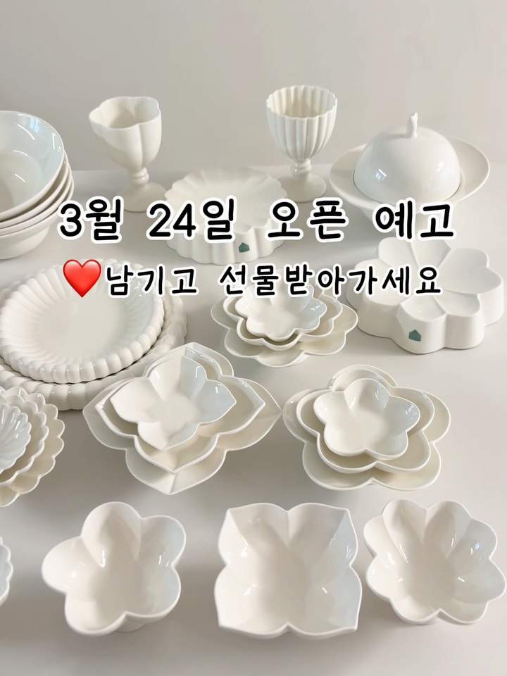 3/24 오전 10시 까사무띠 부케 최저가 공구 오픈해요! 👉 까사무띠 써보고싶으신분 ❤댓글 남겨주세요 ✨추첨을 통해 🌹튤립찜기 2분 선물로 보내드릴께요!! 🌸좋은거 같이 써봐용🌸 ▶️ 친구 소환하고 소문내 주시면 당첨 확률 UP!🎊 ▶️ 좋아요+저장+공유> 해주시는 센스😘 까사무띠 오브제 시리즈 자연을 닮은 '부케' 유광 식탁위에 작은 꽃다발을 선물해드릴께요🎀 [부케 4인세트 35p] 공기 4p + 대접 4p + 면기 4p + 소스볼 4p + 찬기 소 4p + 굽 찬기 중 4p +디저트볼 4p + 중접시 2p + 원형대접시 1p + 원형대접시 1p + 원형중접시 1p+고블렛 2p + 찜기 1p ✔️한식, 양식, 디저트 등 다양한 요리에 모두 찰떡 ✔️사계절 내내 사용하는 데일리 그릇 ✔️화이트 도자기 재질 ✔️1280도 고온에서 구워서 내구성 및 내열성 뛰어남 ✔️환경호르몬&유해물질 검출 ZERO ✔️감성적이면서 가격도 착함 ✔️반찬 올려놓으면 고급 한정식집 느낌 ✔️밥 먹을때마다 기분좋고 대접받는 느낌 ✔️오븐/전자레인지/식세기 사용 가능 ✔️신혼부부, 집들이 선물로 강추 최저가 공구 알림 필요하시면 ⭐팔로우+알림⭐댓글 남겨주세요🩷 * 제 프로필링크에서 문자 알림 신청도 가능합니다! #까사무띠 #까사무띠공구 #그릇 #그릇공구 #신혼살림
