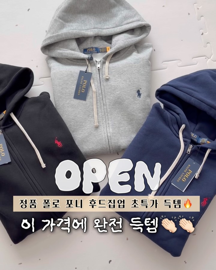 ‼️댓글에[링크]달아주신 팔로워분중 뽑아 “네이버페이 1만원권“쇼핑지원금 드릴께요♥️ -> 구매가능한 최저가링크 바로 보내드립니다📩📩 의류는 정말 괜찮은 가격대에 메리트 있고 편하게 자주 입으며 활용하실 수 있는 제품만 소개해 드리는데, 이 제품 제가 먼저 받아보고 정말 손이 많이가고 활용도도 좋은데 후드집업임에도 불구하고 가격도 넘 괜찮아서 자신있게 소개해드려 봅니다..🙌🏻♥️ ▶️정품 랄프로렌 포니 후드집업 컬러 : 블랙/그레이/네이비 사이즈 : S/M/L/XL -> 사이즈 여유있게 나온편이라 편하게 입기 좋아요! ▶️178cm 85kg 어깨 넓은편인 남편이 XL사이즈 여유있게 입어요! ▶️156cm 71kg 뚱뚱한 체형인 저는 남편사이즈인 XL 크게 해서 편하게 입고 L사이즈 해도 루즈하게 이쁘게 맞을거같아요-!♥️ 후드집업이라 정말 어디에나 활용도가 너무 좋고, 기본 디자인이라 속에 입기도 걸쳐입기도 편하게 자꾸 자꾸 손이가요~🥹 ✔️100% 정품, 정식통관 해외병행 자주 오기 힘든 공구니까 놓치지마세요~! 일요일 오전 9시 오픈되며 인기 사이즈는 빠른 품절이 있을 수 있습니다😭😭