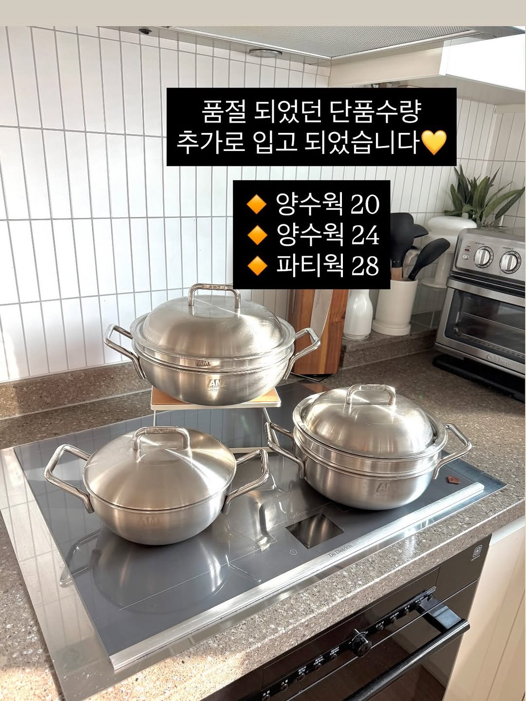 #인상전마지막공구 AMT 이가격에 구매할 수 있는 마지막기회라 “최저가 구매는 솔트마망 공구가 마지막”이에요🥹 눈여겨 보신 분들 꼭 놓치지 마세요~~ ✅ 3/29(일) 마감입니다!! 품절 된 단품 재고 추가로 입고 되었어요💛 ✔️양수웍 20cm ✔️양수웍 24cm ✔️파티웍 28cm 🔻세트구매 순위🔻 1. 인기 3종 B세트 ( 라이스쿠커 + 컴바인팬 + 파티웍 28) 2. 매일 쓰는 베스트 3종 (양수웍20 + 멀티쿠커 22 + 파티웍28) 요리 업그레이드는 물론, 요리가 쉬워집니다~~ 저는 컴바인팬에 계란후라이 자주 하는데요, 얼마나 잘되는지 이따 상세히 남겨드릴게요😊 정말 쉬워요오~~~💛 레벤호프 오일스킬렛도 함께 진행중입니다~ 🔻AMT & 레벤호프 오일스킬렛 316Ti🔻 -영양소 손실 최소화 요리 가능 -의료도구 임플란트 인공관절에 사용되는 안전한 인체친화적 재질 -내식성과 내구성이 강해 맵고 짠 한식요리에도 적합 -통5중으로 높은 열전도율 -음식이 타도 걱정없어요! 물에만 불려주면 손쉽게 닦입니다. 🎁 선착순 10분께 네이버 포인트 1만점 지급! (제품 발송 2주 뒤, 1인 10000점으로 일괄 지급되며, ”스티머, 액세서리“는 이벤트 대상에서 제외됩니다) 🎁미리써보기 이벤트🎁 알림 댓글을 남겨주신 분들 중 -> 한결 같은 인기 ”28cm 파티웍“ 2명 추첨 🎁세트 구매 전원 증정🎁 프리파라 브루클린 트라이탄 밀폐용기(220ml) + 발포클리너증정 🎁최대 구매왕 1명🎁 샤크 에보 파워 무선청소기 LC351 (65만원 상당) 🎁30만원 이상 구매 5명🎁 레벤호프 스텐 사각 뒤집개 증정 (스텐 요리 필수템!!) 🎁60만원 이상 구매 3명🎁 AMT 316ti 사각 컴바인팬 증정! 🎁오일스킬렛 구매자 전원🎁 프리파라 브루클린 트라이탄 밀폐용기 2.2L 증정 💝➕여기에 추가로!!!💝 [구매완료+핸드폰 뒷 4자리] 남겨주신 분들께 추첨을 통해 네이버 5000원권 추가로 증정(10명) 〰〰〰〰〰〰〰〰〰〰〰〰〰〰〰〰〰 🔸입문자 추천 풀세트🔸 샤프 18cm 스마트쿡 편수 샤프 20cm 양수웍 샤프 24cm 양수웍 샤프 28cm 파티웍 🔸매일쓰는 베스트 3종세트🔸 샤프 20cm 양수웍 샤프 22cm 멀티쿠커 샤프 28cm 파티웍 🔸신혼 3종 A세트🔸 샤프 20cm 양수웍 샤프 24cm 양수웍 사각 컴바인팬팬 🔸인기 3종 B세트🔸 라이스 쿠커 사각 컴바인팬 샤프 28cm 파티웍 ✅ 3/29(일) 마감 ✅ 프로필링크에서 구매 가능합니다